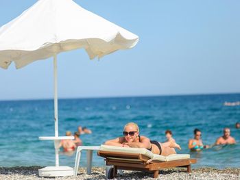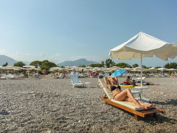 Большой ресторан без толчеи, чистые скатерти, вкусные мясные и овощные блюда, десерты. На пляже всегда есть свободные лежаки