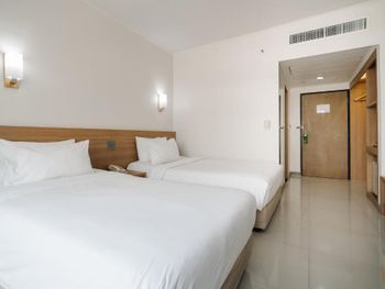 на ресепшене все угрюмые, как будто никого не рады видеть. при заселении взрослый мужчина на ресепшене пытался нас открыто нагреть на 300 бат когда давал сдачу. после уборки комнаты персоналом мы обнаружили, что код чемодана сбит, то есть пытались открыть наш чемодан. напор в душе никакой, чтобы помыться нужно затратить времени в 4 раза больше обычного. вода либо кипяток, либо прохладная. больше не вернёмся сюда. нет ощущения безопасности оставленных вещей в номере