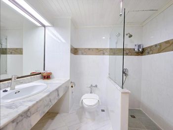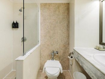 Убитый санузел, серые и старые полотенца. Постоянно забывали класть чистые полотенца и приходилось ходить на ресепшен за ними.