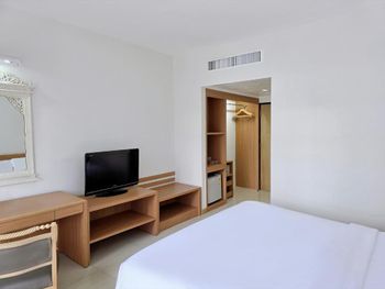 Указано, что будет сверхскоростной интернет НО ОН ЕЛЕ РАБОТАЛ. Если планируете поработать в номере - то это не самый удачный выбор. Напор воды в душе был ужасен. Невозможно нормально мыться, волосы под такой струей даже не намочить и не промыть. Очень долго ждать когда начнет идти горячая вода. Более 13 минут. Бассейн был с ледяной водой в котором невозможно долго плавать. Очень мутная вода. Впервые такое видела. Заранее бронировали номер с большой кроватью на двоих человек. При заселении девушка на ресепшен сказала, что нам придётся сначала заехать в номер с двумя раздельными кроватями, а на следующий день заселиться в нужный номер. По итогу другой молодой человек на стойке регистрации через 5 часов сказал, что нас заселят в тот номер, который мы забронировали. Но испорченного настроения не вернуть Так же не было предложено ранее заселение, хотя в объявлении указана услуга. Я заранее связалась с отелем и предупредила, что прилечу рано утром. На что мне все равно пришлось ждать 14 часов дня без сил, чтобы заселиться. Телевизор не совсем современный. Не стали брать ноутбук, так как полагали, что сможем посмотреть кино через браузер на телевизоре или ютуб, но там его не было, только местные каналы