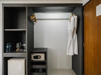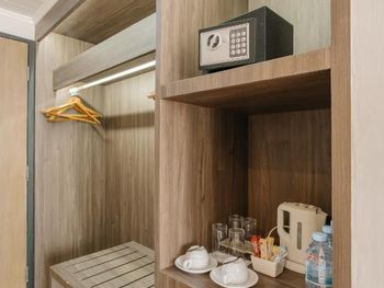 В номерах предоставляются принадлежности для чая/кофе, а также бесплатная бутилированная вода. В стоимость включены сейф и халат.