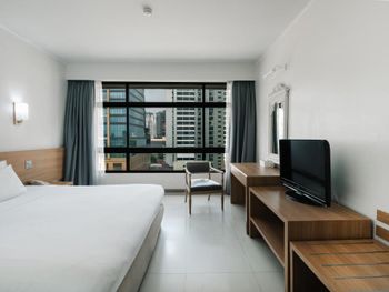 Очень грязный и старый номер, который очень плохо подготовили под мое прибытие. Были грязные разводы на всех отражающих поверхностях. Черные волосы на раковине и полу в ванной. Вся мебель изветшала, ржавая не съемная лейка на душе. Кондиционер не скрипит и трещит только если выставить минимальный обдув, в остальных случаях он трещит как небольшая газонокосилка. Пыльные и грязные шторы все в разводах и пятнах. В номере не хочется не до чего дотрагиваться потому что все или является грязным или выглядит так. Так же в номере были тараканы, прям огромные тараканы. При этом мы жили на 7 этаже и они не просто добрались до туда, очевидно что они живут в гостинице. Самый главный минус это матрац, он создан что бы приносить боль в каждой мышце и кости твоего тела. За две ночи выспаться не вышло ни разу. Никакого шведского стола нет на завтрак. Заказываешь по меню. Завтрак бедный и не вкусный.