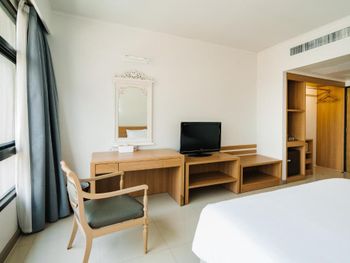 В эту поездку проживали в отеле три раза, одну ночь вначале поездки, по две ночи в середине и в конце поездки. Отель выбрали, так как он понравился нам в предыдущую поездку. В этот раз по прибытии сразу удивила грязная ковровая дорожка в лобби отеля. Первый номер был выбран на одну ночь, самый дешевый, на усмотрение отеля. В данном номере было ковровое покрытие, которое сильно пахло сыростью, окна в отеле не открываются. Второй номер в поездке был делюкс. Третий номер в поездке был улучшенный ( в номере на двоих был один стул). Во всех номерах, особенно в улучшенном, старая, потертая мебель, местами сломана, застиранные полотенца, сильно шумит кондиционер. Также в улучшенном номере подтекала на пол вода из под раковины. В предпоследний день пребывания вернулись в отель в обеденное время, в номере было не убрано, пробыли в номере полтора часа и ушли, оставив табличку с просьбой убраться. Когда уходили, нас видела горничная, номер так и не был убран. Интернет иногда тормозил. Отель разочаровал, становится все хуже.