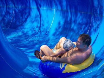 Горки в бассейне работают с 11 до 12 утром и с 15 до 16 после обеда. Причём обе.