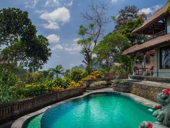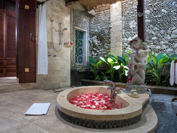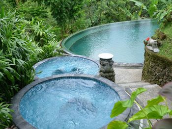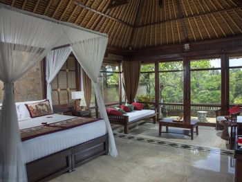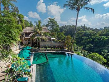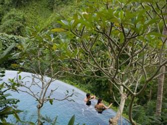 Останавливались семьей на двухэтажной вилле с двумя спальнями и бассейном. Понравилось. Вилла не новая, но красивая, в балийском стиле. Территория отеля утопает в зелени, очень ухожено, бегают белочки. Тихо. Отличные завтраки - шведский стол плюс можно заказать блюдо по меню. Несколько раз в день от отеля ходят бесплатные шаттлы до центра Убуда. У нас также входил комплиментарно час балийского массажа, сходили с мужем, было отлично.