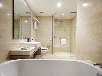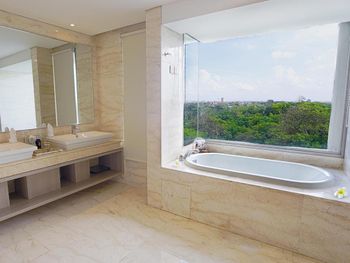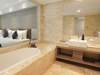 Гости отеля с 5 звездами Platinum Hotel Jimbaran Beach Bali могут воспользоваться сауной и гидромассажной ванной.