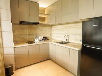 В некоторых номерах также имеется мини-кухня с холодильником, микроволновой печью и плитой.