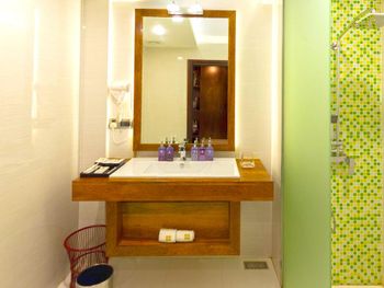 Горячей воды в номере не хватает даже на 1 человека, потом начинает течь еле-еле тепленькая, на номер один совсем небольшой бойлер. Но если намылиться, выключить воду, постоять минут 5, то вода ещё немного согреется =) Вода плохо смывает мыло.