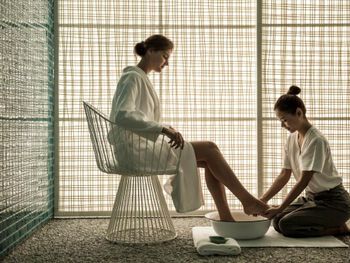 В комплексе оборудованы процедурные кабинеты и беседки для тайского массажа, а также отдельные мужские и женские парильни, гидромассажный бассейн и фитнес-центр. Гости могут принять участие в занятиях йогой. Сотрудники туристического бюро организуют посещение местных достопримечательностей.