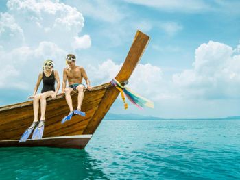 От пристани Ao Po Grand Marina пересаживают на хорошую моторную большую лодку,человек на 10. Лодка с крышей, до острова минут 10.