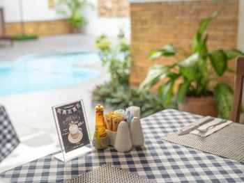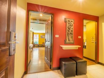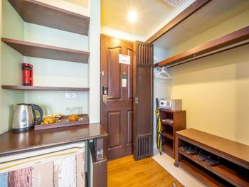 Мне понравилось расположение отеля на тихой улице. Рядом ресторан и массажный салон. Чистый номер. Есть небольшая видеотека фильмов на TV, я посмотрела 2 фильма на английском языке. Много вешалок для одежды, есть шлепанцы и сумка для пляжа, есть зонт. Бассейн был доступен в поздние вечерние часы.