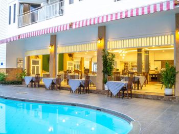 Хороший чистый, уютный отель, территория не большая но все есть, бассейн для детей и еще один для взрослых! Очень понравились растения на территории, создают тропическую атмосферу! Убирались хорошо, всегда приносили воду на всех членов семьи, меняли полотенца, добавляли чай и кофе. До моря идти не далеко, есть короткая дорога, но по узкому проходу между зданиями, в обход идти намного дольше.