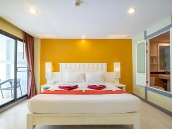 У нас был номер 1303,вид с балкона был наполрвину на стену соседнего отеля,но если повернуть голову направо,то на бассейн,мы хотели поменять номер,но нам отказали,сказали,что пока нет типа свободных номеров,не знаю правда это или нет,мы хотели позже попробовать поменять,но нам было уже лень потом. В номере нет рабочего стола,было очень не удобно работать за ноутбуком.Также в номере не хватает света,немного темновато по вечерам. Вечером сходили в кафе при отеле,не советую,цены выше,чем на улицах плюс еще проценты за обслуживание 10% и налог 7 %,то есть 17%,пиво сиинха маленькая бутылка на пляже стоит 100 бат,на рынке 60 батт,а у них 150 бат!плюс процент!вообще не выгодно там кушать,лучше пройти немного из отеля прямо до дороги , потом направо кафе 512 Фришмен,очень вкусно там;цены норм и нет процентов за обслуживание,рекомендую.пока ели в отеле в кафе увидели там огромную крысу,она бегала по полу,а потом запрыгнула на стол,где блины пекут!это ужас!поэтому мы и не ходили на завтраки! Очень неудобно располржены у нас были балконы,такая низкая перегородка,что видно соседей с соседнего номера,когда они на балконе,очень некомфортно,уединиться не получится.Отель находится далековато от пляжа Патонг,минут 17-20 пешком ,через улицу Бангла роуд,по жаре конечно очень выматывает,трансфера до пляжа нет. Так же;когда заселились,в номнре стоял запах плесени и периодически появлялся.