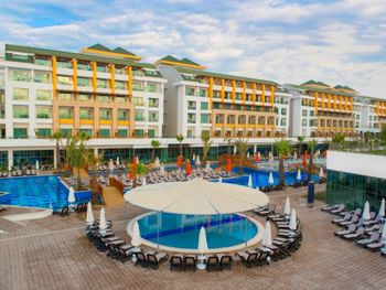Разнообразие алкоголя, коктейлей в барах. Хорошие водные горки. Дизайн номера и отеля в целом. Вкусное мороженое, великолепные сладости, не такие как в других отеля Турции. Еда неплохая, раки были 2 раза за неделю. Обедать вкуснее в баре на пляже, там пицца, крылышки в панировке, бургеры. Прикольно что официанты могут приносить напитки из бара. Отдельно отмечу Irish Bar, за него 10 баллов)) Отличный wifi. Прекрасные террасы с гамаками и красивым видом.