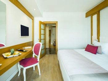 Звукоизолированные номера курортного спа-отеля Port Nature Luxury обставлены современной мебелью и оснащены электрическим чайником, мини-баром и бесплатным Wi-Fi. Из некоторых номеров открывается вид на море.