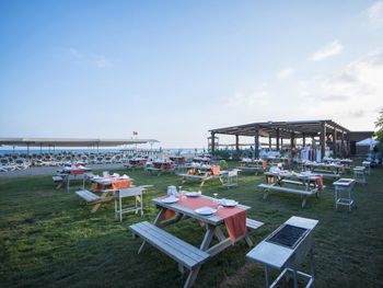Отель работает по системе «все включено». Гости могут заказать блюда по меню в ресторанах, за исключением основного ресторана.
