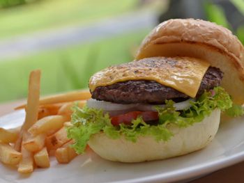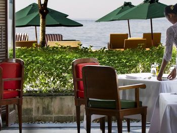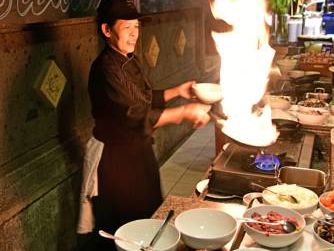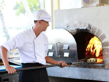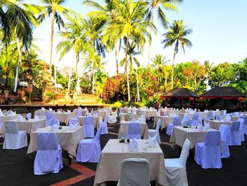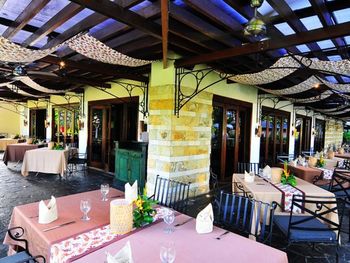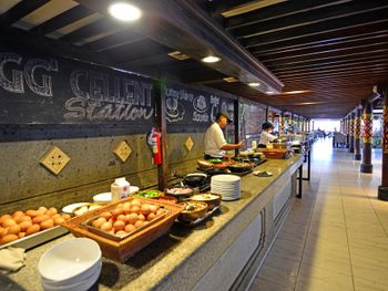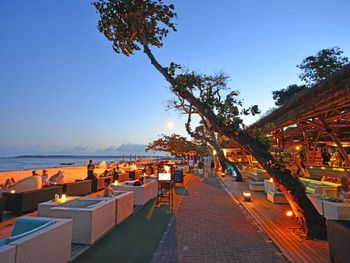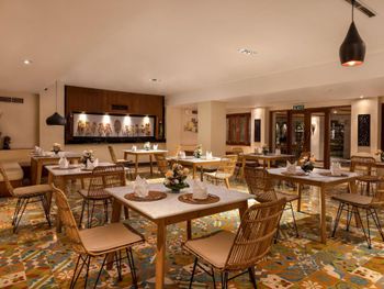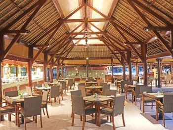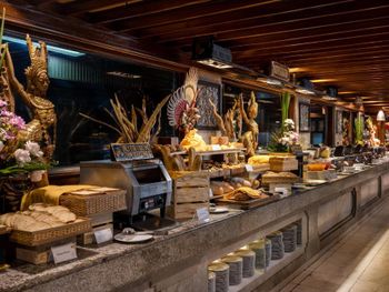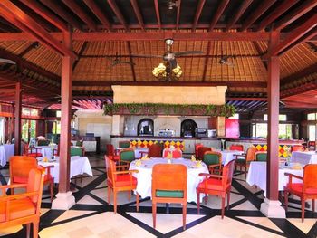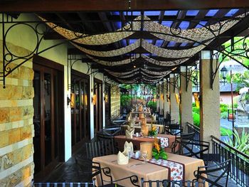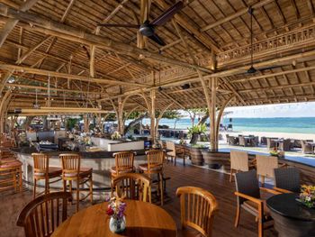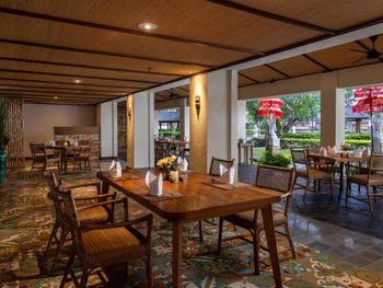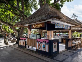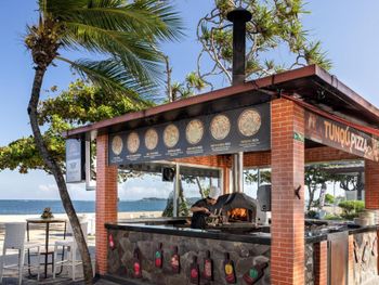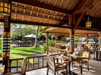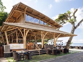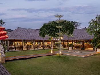 Рестораны: ресторан у бассейна Tirta, итальянский павильон и бар Basilico, ресторан Lada, кафе Prama и пляжный бар Bamboo.