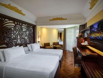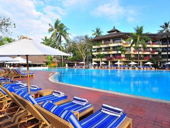 Отель Prama Sanur Beach Bali с двумя открытыми бассейнами расположен прямо на песчаном пляже Санур. В отеле осуществляется круглосуточная доставка еды и напитков в номер. Отель окружен тропическими садами площадью 6 гектаров. К услугам гостей спа-салон и фитнес-центр. На всей территории отеля работает бесплатный Wi-Fi.