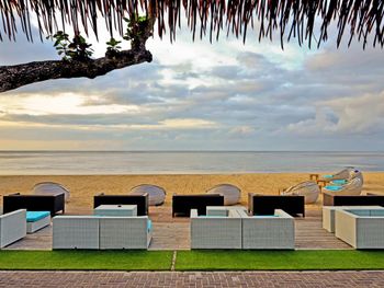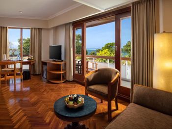 Понравилось все! Больше всего территория, большая, ухоженная, свой пляж, куча ресторанов, кафе, обслуживание прямо на пляже, все просто замечательно. В отзывах читал что купаться на Бали невозможно, но это место исключение, с утра ежедневно можно купаться, вода к 8-9 утра приходит и в 15 метрах от берега по плечи. Волн нет вообще, закрывает гряда рифов, правда после обеда где было по плечи становится по щиколотку, ну если это учитывать то с купанием проблем не будет(после обеда детское время!). Имеется и небольшой фитнес зал со всем необходимым. Питание на завтрак шведский стол, приличный, ужин рестораны, с хорошим уровнем продуктов и обслуживания, по ценам как в городе. Уборка и замена белья без замечаний и незаметно для нас. Отлично!