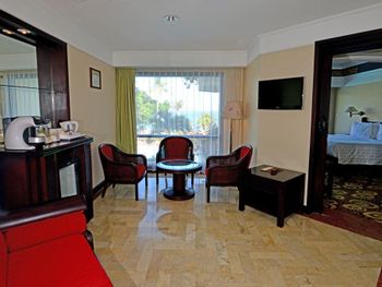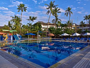 Отель недалеко от аэропорта - 25 мин на такси. Большая зеленая территория. Первая линия. 2 не маленьких бассейна. Всем хватает лежаков. Отель в тихой зоне, далеко от дороги. Периодически за доп.плату а-ля 250 тыс.руп.проходят шоу-программы с ужином.