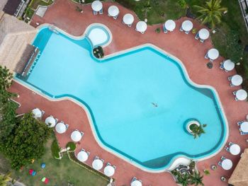 Недостаточно лежаков на большом бассейне, приходится очень рано их занимать. Можно было бы расширить зону для лежаков за счет зеленой зоны, поставив лежаки с зонтиками в два ряда, а также можно было бы поставить лежаки поплотнее друг к другу.
