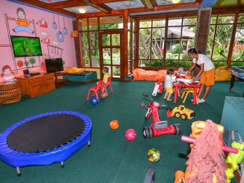 Выбирали отель из-за наличия детской комнаты и горок в бассейне. Детская комната хорошая, горки тоже пойдет. Для детей 4-7 лет самое то. Территория отеля большая и чистая. Персонал отличный. Сделали подарок на день рождения ребенка. Мы попросили тортик, а они еще открытку и цветы принесли.