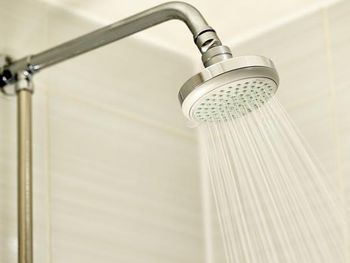 В ванной комнате душевая дверь не прилегала и плотно не закрывалась. Со стороны петель двери была щель в 1 см как минимум. Напор воды очень слабый. А верхняя лейка давала струю во все стороны, и даже вверх.