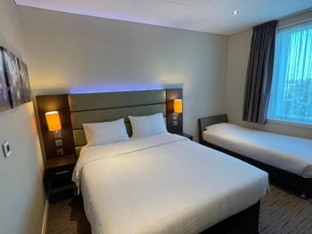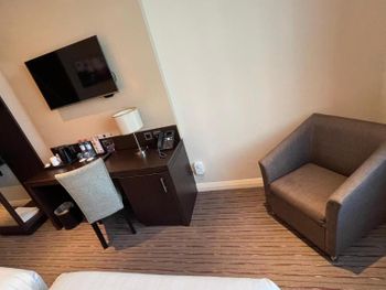 Замечательный отель, все чистое-новое, все работает, отличная дорогая сантехника, белье - в прекрасном состоянии, большой сейф, уборка безупречная, водичка-кофе-чай бесплатно каждый день, большой хороший телевизор с выведенными на стену гнездами для подключения ноутбука, фотоаппарата и т.п., много розеток, но половина их них под английскую вилку. Прекрасный завтрак, отличная цена за отель. Бассейн подогреваемый, небольшой но чистенький, работает до 9 вечера. Отличный тренажерный зал рядом с бассейном. Персонал отличный, помогали во всем, есть почти русскоговорящий человек на рецепции. Вайфай ловит везде хорошо, но скорость интернета небольшая.