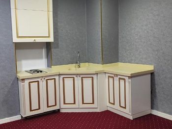 Очень грязно. На постелях желтые пятна, полотенца серого цвета, халаты серые с пятнами. Ковролин грязный. Окна грязные и пыльные. В апартаментах есть плита, но нет посуды. Некомфортно.