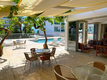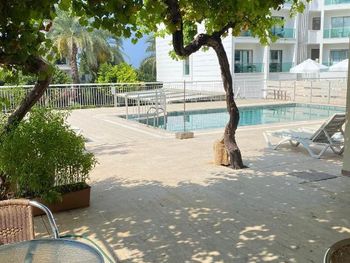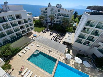 Расположение рядом с городским пляжем. Рестораны рядом. Свой бассейн. Вид из окна.