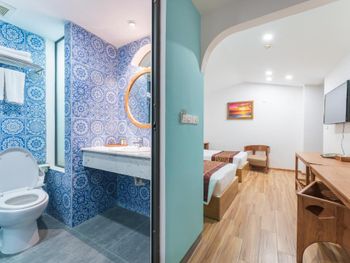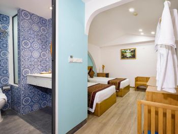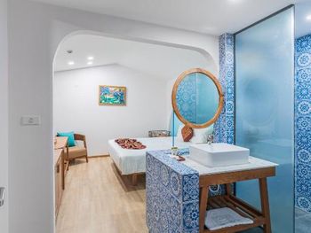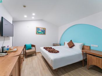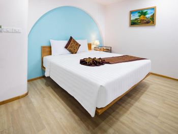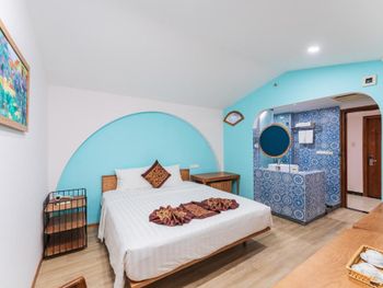 С порога нас встретили кислые лица, ни здравствуйте, ни улыбки, на ресепшене жара кондеры выключены, сами сидят потные и гостей не желают охладить. При раннем бронировании заселились в 14.00(ладно тут понятно, гости еще не выехали) не пойму тогда зачем писать о раннем заезде. Номер капец, с терассой, я ее не могу назвать терассой, дверь в помещение 2м х1м, решетка -вид на балкон другого отеля, даже белье там нет возможности посушить. Окна нет. Полотенца чуть чище половой тряпки, рыжие были видимо новыми, застиранные с белыми пятнами от хлорки. Уборка на троечку, кондер допотопный , минут 15 надо , что бы жара в номере нас начала покидать. Вай фай в номере пропадает,это очень огорчало,телевизор не ловит интернет, хотя меня он меньше всего волнует(так для фона иногда музыку) Пляжных полотенец не всегда хватает, в очередной раз когда не хватило, я поняла , что пляжные и в номере, это одни и те же застиранные с пятнами. Завтраки так себе, не приветливые работники, не пополняют закончившиеся продукты. В целом все познается в сравнении, я сюда больше ни ногой, рядом жила в Boss hotel, Happy home, поняла , что выбираю их. Отрицательный опыт -тоже опыт.