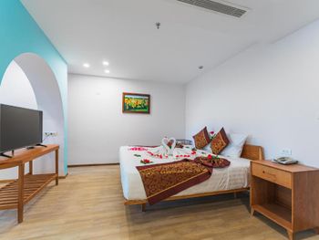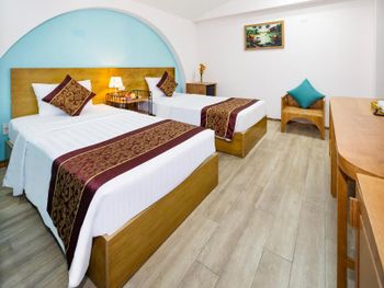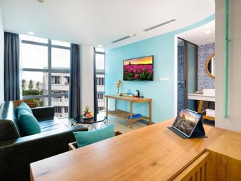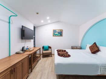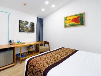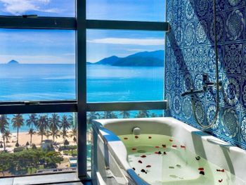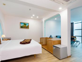 У отеля отличное расположение: тихий переулок за первой линией. Всё, что нужно туристу, всё есть рядом в огромных количествах. Море рядом (но зимой на всём центральном пляже лучше не купаться, конечно), ещё, кстати, дали на ресепшен пляжное полотенце. Завтрак стандартный для этой ценовой категории во Вьетнаме, мы один раз посмотрели, больше не ходили. Яйца, овощи и кофе, примерно так. Сотрудники приятные, на английском языке говорят. Сам номер достаточно просторный, но не такой, как на фото. Была большая комната, разделенная декоративной аркой на две зоны: спальню и гостиную. Прикол был с балконом, он тоже большой, но тоже разделен железной перегородкой, и чей-то балкон был позади нашего балкона )) ну то есть люди выходили на балкон и видели там меня за перегородкой, а потом только всё остальное ? Ванна классная, вода горячая, напор хороший. Техника вся работает, постельное чистое. Мебель чуть уже повидавшая виды. *Всё, что описано, касается именно нашего номера 707, в других может быть совсем всё по-другому* В общем, ожидание и реальность совпали, сюрпризов не было, всё хорошо.