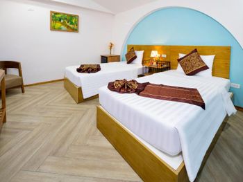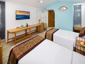 Сначала жили в семейном номере очень хороший, без муравьёв, Мы решили продлить проживание, т. к расположение отеля удачное и вид из окон прямо на пляж, что очень подкупало, но на следующие 10 ночей номер предоставлен не тот что бронировали, на ресепшене сказали что занят, выбора не было пришлось остаться в каком дали. Зато из семейного номера нас быстро попросили освободить. Прошу пересмотреть варианты завтраков почему все остро делают. Уборка номеоп тчательней проводить. Замена постельного вообще отсутствует.