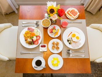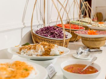 В присутствии гостей готовятся блюда азиатской и европейской кухни, а по запросу подаются блюда традиционной вьетнамской кухни. В баре предлагается широкий выбор коктейлей и вина.