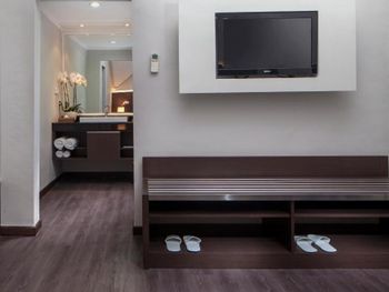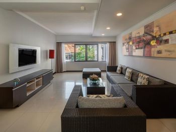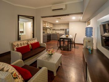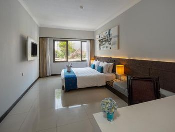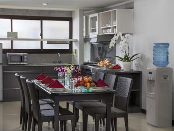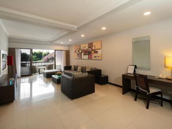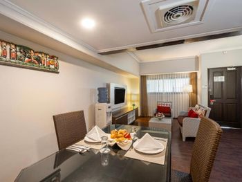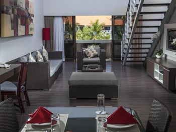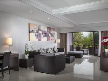 Люксы отеля Prime Plaza Suites Sanur - Bali, построенные вокруг пышного тропического сада, оформлены в современном стиле и отличаются хорошим естественным освещением. В каждом из них есть хорошо оборудованная кухня, обеденная зона и отдельный гостиный уголок, где установлен телевизор с плоским экраном и DVD-плеером.