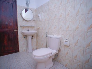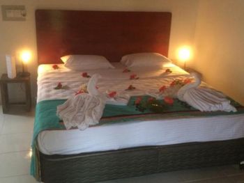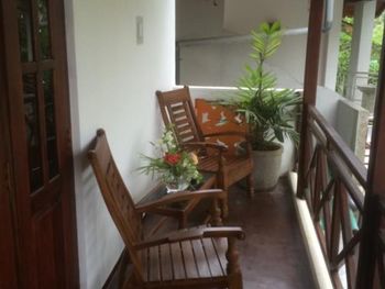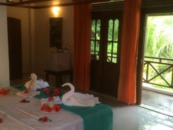 Отель не новый, но в очень приличном состоянии. В основном проживают русскоговорящие. До моря 2-3 минуты пешком. Персонал очень дружелюбный и отзывчивый. Завтраки 2х видов на выбор: стандартный европейский (яйца, тосты, масло, ждем, чай, кофе) или местная кухня. Обязательно за завтрак подают тарелку с сезонными фруктами. Рядом с отелем лавка с фруктами и ресторан со свежими морепродуктами. В номере был кондиционер, вентилятор (включили 1 раз и больше не пользовались, т.к. шумел), сейф, фен. Бесплатно выдаются пляжные полотенца (правда состояние полотенец оставляет желать лучшего). У нас был улучшенный 2х местный номер с патио (общее на несколько номеров). Есть место для сушки пляжных полотенец. За 10 дней нашего проживания несколько раз пропадало электричество, но чинили минут за 30. Горячая вода обычно отсутствовала вечером, когда все приходят с пляжа (на всех не хватает), поэтому или приходить с пляжа чуть раньше или мыться уже совсем вечером. Ездили на тук-туке на Джангл бич и на Данавеллу. Можно и пешком дойти, минут за 30. Очень рекомендую эти 2 пляжа.