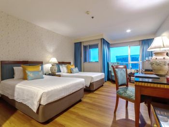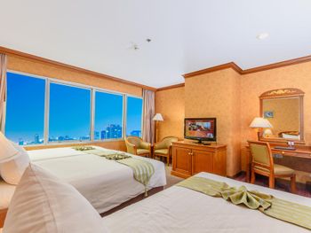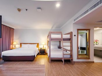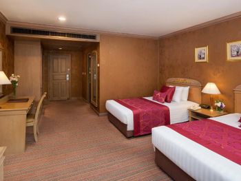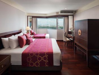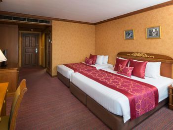 Тесные и несвежие номера, постельное белье несколько «подуставшее», зато наглаженное, в семейном номере на 4 персоны весь инвентарь на 2 человека (и это очень не удобно!!!), и практически никакого эстетического оформления, как будто заехал в старую ухоженную бабушкину квартиру, скрипучие шкафы и кровати. Хмурый уставший неприветливый персонал. Территория отеля - блеск, но сразу за воротами начинается самое «дно» Бангкока - нищета, грязь и вонь. Больше сюда не заедем.
