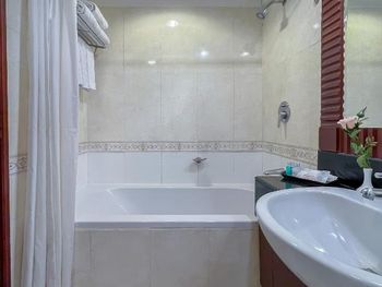 Жили в башне А. В номере неприятный запах. Мебель и декор в очень поношенном состоянии. Категорически мало света! В душе приходилось очень наклоняться или приседать, чтобы попасть под напор воды.