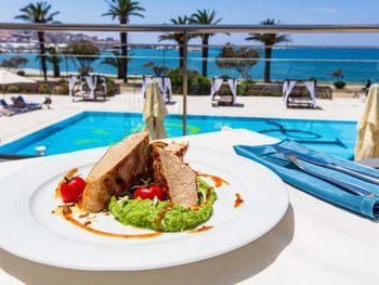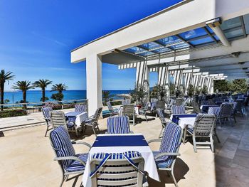 Самый главный минус (скорее страны, а не отеля) - все везде курят, и администрация искренне удивляется в чем проблема. Курят на соседнем балконе, и следующие 2 часа в номере воняет дымом, курят за завтраком, курят возле бассейна, курят на пляже. Это индивидуально, конечно, для меня это огромный минус. Хочется дышать морским воздухом. Рядом порт - море грязное. Пляж отельный тоже грязный. Его не чистят и не убирают совсем. Бассейн на улице небольшой, больше подходит для детей. Внутри есть детский бассейн.