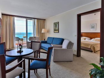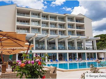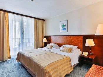 Близко к морю, прекрасный вид из окна (особенно на горы), просторный номер, отличный ароматный шампунь, удобные кровати/подушки, есть электрическая сушилка, есть русские/украинские каналы ТВ. Завтрак базовый, наверное если отдыхать долго, то надоест. Иногда бывает каша. В баре у бассейна очень вкусное мороженое! Отличные сотрудники ресепшн. Уборка номера - отлично. Рекомендую отель всем, кто живет в Сербии и собирается съездить в ЧГ на поезде, от ж/д вокзала 2 км, идеально! Приехал - и сразу в море!
