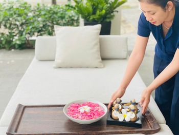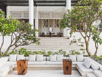В ресторанах подают разнообразные блюда вьетнамской кухни и свежие морепродукты. Желающие могут заказать доставку еды и напитков прямо на виллу или устроить барбекю на пляже, воспользовавшись услугами личного шеф-повара и дворецкого. Блюда могут быть поданы у бассейна с видом на море.