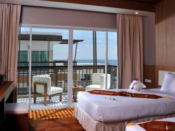 Красивый вид из номеров с видом на море! Номера комфортные, светлые, чистые, соответствуют фотографиям,кровать удобная. Уборка каждый день. Питание нормальное. Выбор блюд не очень большой, но голодными не останетесь. Из фруктов всегда были ананас и арбуз, чередовались драконий фрукт или дыня На пляж отвозят и забирают оттуда, на шатле, каждые 30 мин. Очень удобно. Пешком до моря идти минут 20-30. Шатл забирает с пляжа до 17-00, если решили задержаться, то в отель возвращаться либо пешком, либо взять тук-тук (200 бат) Рядом есть 7-eleven