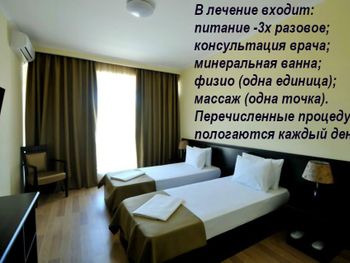Прекрасный отель-санаторий. Заселили раньше положенного времени и бесплатно подняли категорию номера за что отдельная благодарность. Рекомендуем брать пакет с лечением и полным пансионом. Доктор очень внимательная. Процедуры были назначены согласно диагнозам. После 6 дней лечения почувствовали реальное улучшение состояния здоровья. Сотрудники процедурных кабинетов любезны и обходительны.