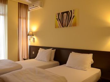 рядом находится кафе нектари , где вечером включают громкую музыку, что очень мешает отдыхать. персонал отеля к этому относится индифферентно , один раз музыка ревела до полвторого ночи, пока не позвонил на ресепшен и не предложил вызвать полицию , никто не реагировал