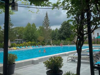 Отель очень понравился. Небольшой, уютный. Кормили отменно. Все процедуры кроме ванн можно пройти в отеле. На территории есть открытый бассейн, но мы были в не сезон и он не работал. До парка и источника № 2 - 5 минут. Пока данный курорт посещает не очень много туристов, но зато атмосфера при этом уютная, домашняя. Оношение персонала прекрасное.