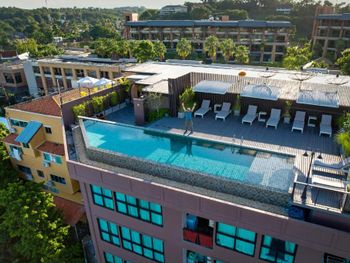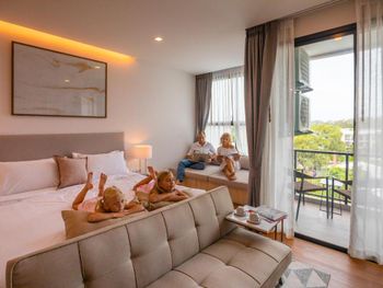 Очень удобный номер: есть всё необходимое для жизни и блендер. Приятный персонал: все вопросы решались легко и быстро. Бассейн на крыше совсем небольшой, но ребёнок от него в восторге! Вокруг много вкусных кафе, Seven-Eleven, обменники, банкоматы, турагенства, аптека... В общем, всё для жизни!