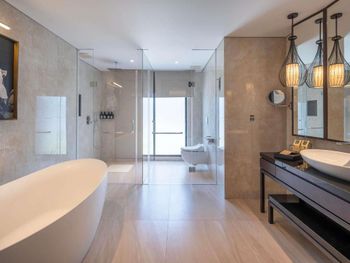 Spacious units open out to panoramic views of the Indian Ocean or landscaped grounds from private balconies. They feature flat-screen internet TV, separate shower and bath areas and wood flooring.