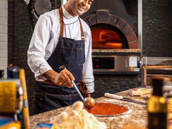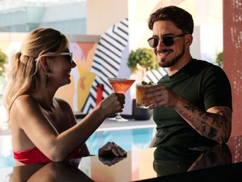 В круглосуточном ресторане, где подают итальянские фирменные блюда, гости могут заказать различные деликатесы. В баре гостям предлагаются коктейли.