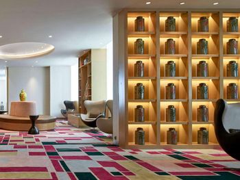 Отель находится в самом центре, через дорогу есть 2 крупных торговых центра, один люкс, второй с магазинами средней категории. нет столпотворения шоперов в отличие от рядом стоящего отеля Кемпински. рада что выбрала именно этот отель.