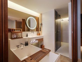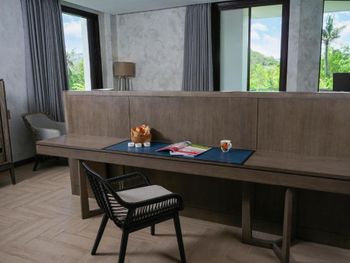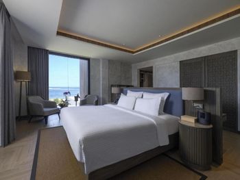 -это бизнес-отель. Это главный минус этого отеля. За неделю пребывания в отеле только первые пол дня мы провели в спокойствии. А потом приехали группы людей(одни местные «инфлюенсеры» с дронами, фотосессиями, камерами; другие - невоспитанные группы людей на конференции): толпы шумных людей, орущих под окнами по ночам и утрам, за завтраками, с камерами, операторами, фотографами - и это вместо релакса. Было очень некомфортно. При этом, персонал крайне странно себя вёл- с одной стороны понимали в чем проблема и извинялись(нас даже переселили в другой номер), с другой стороны- делать что-то с этим не планировали.Чувствовалось, что эти группы у них в приоритете больше чем отдыхающие постояльцы(могли спокойно убрать все лежаки и зонты на пляже в обед, так как начинали готовить ужин на пляже для людей с конференций).